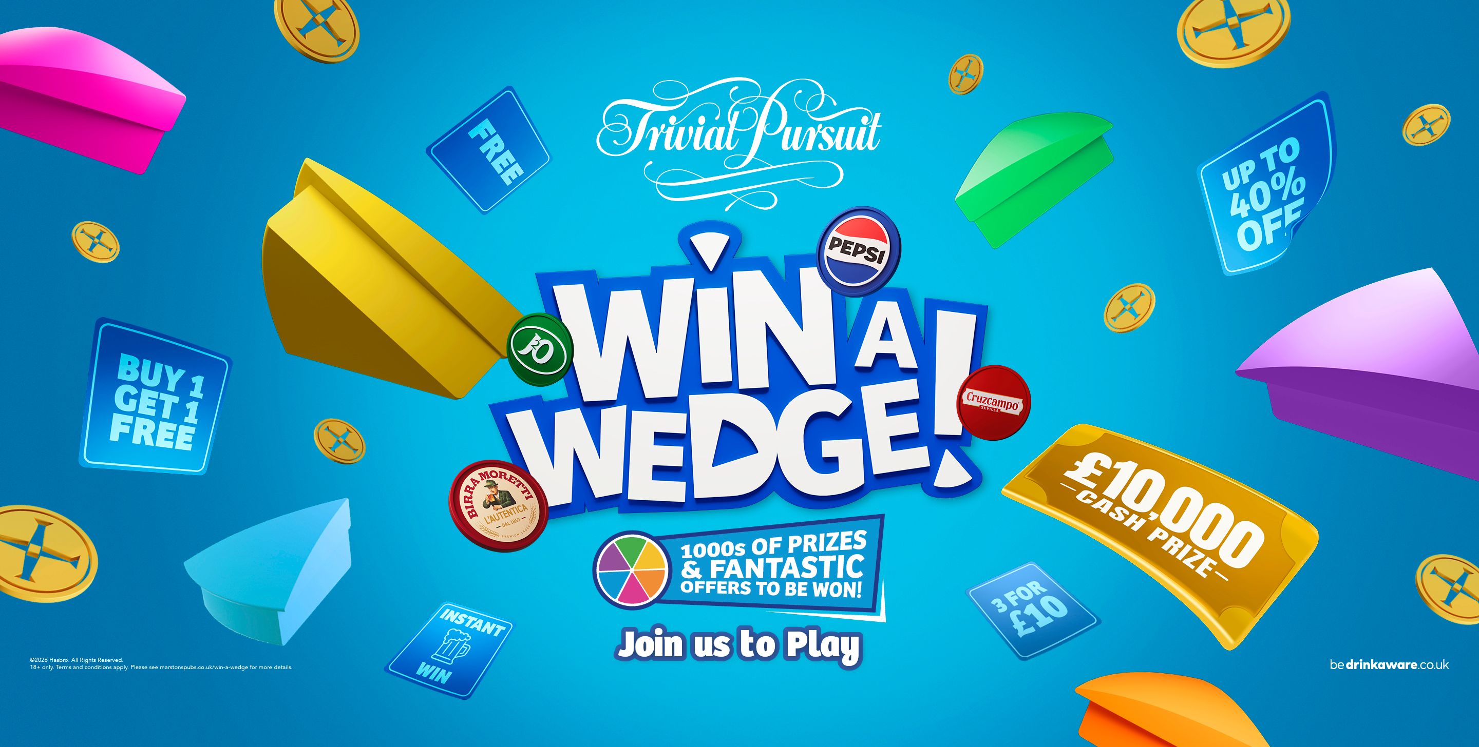 Join us at The Claregate for great food, refreshing drinks, and a chance to test your trivia skills. Complete the pie for instant rewards and be in with the chance to win thousands of prizes and fantastic offers!